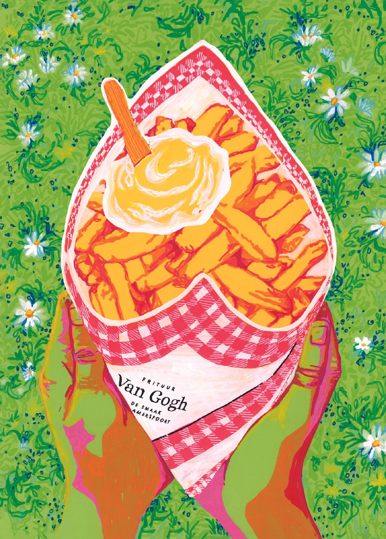 Every year Frituur Van Gogh, the most loved fried food shop in Amersfoort, opens its doors to present a local artist. This year I have the honour of scattering my work around its counter, walls and windows. FINALLY a place where we can enjoy fried food and art in one place!